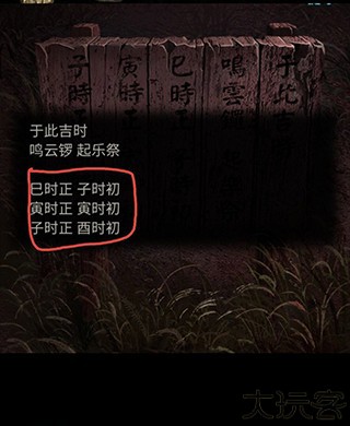 点击中间的牌子,按照:甲-庚-丁-乙-辛-壬 用粗树枝敲打