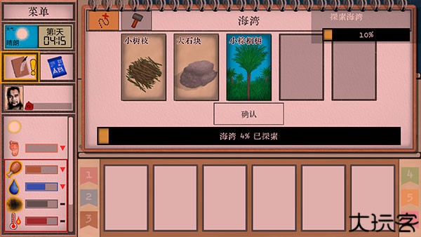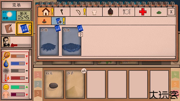 通过资源类卡片获取水源食物,维持角色生理状态。