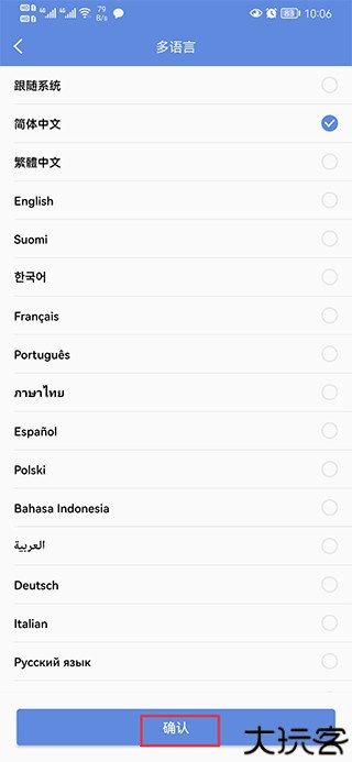 2、选择简体中文并保存,界面语言立即变更为中文。