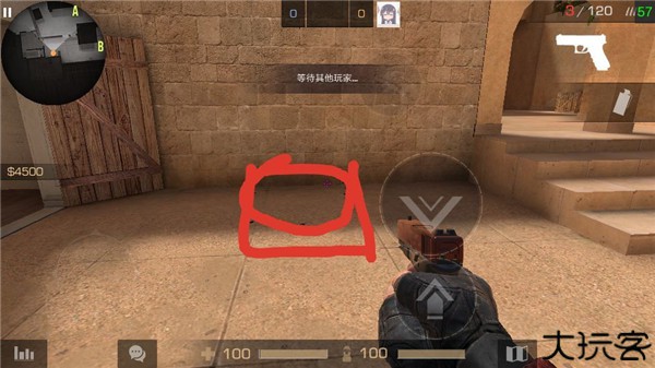4、一人,在右柱子闪身突击观察右小拱门,可以配合闪光对突进的警进行压制。同时也可以偷从楼上下来没注意到玩家的警的屁股。