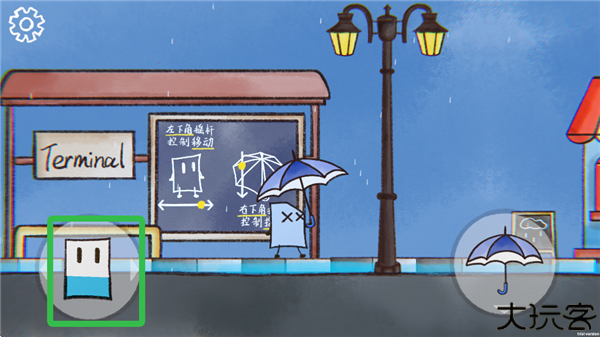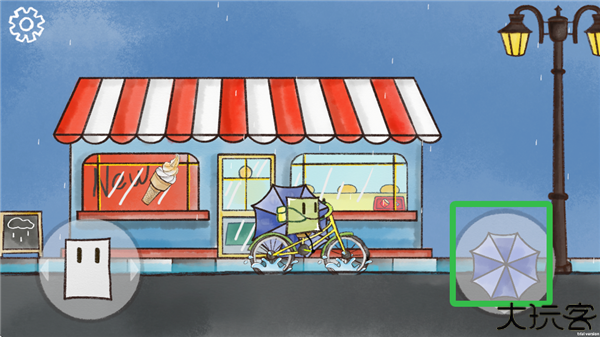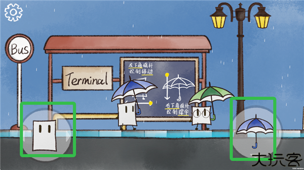 1、左轮盘移动角色方向,右侧操控雨伞保护身体避免淋湿。
