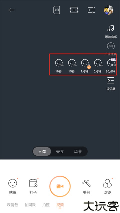 点击右侧“拍摄时长”,可设定10秒至30分钟。