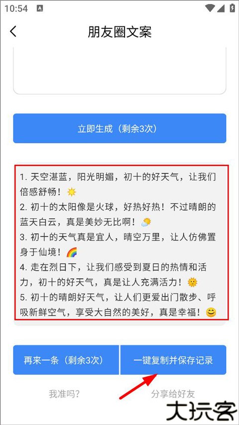 十秒后下滑界面,可预览多条系统自动生成的文案。