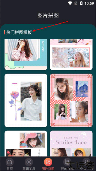 图片拼图页面提供热门模板,可快速将多张照片组合成创意画面。