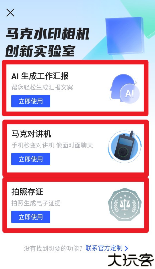 4、创新实验室内提供AI生成汇报、对讲机模拟及拍照存证三大实用功能,适用于多种办公场景。
