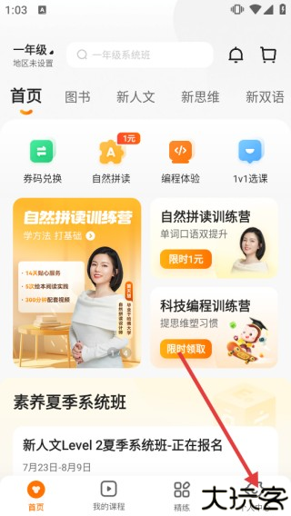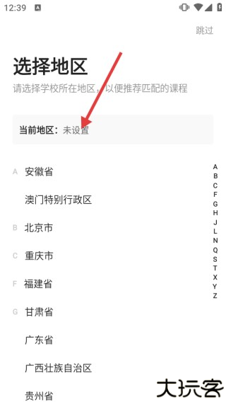 1、打开小猿素养课app安卓版,可以先去选择学校所在地区。