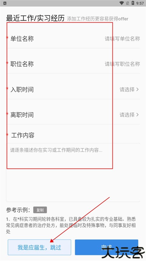完善教育及实习经验,应届生可直接跳过快速进入。