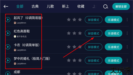4、在曲库板块,用户可以选择喜欢的钢琴曲,还可以打开不同模式练习。