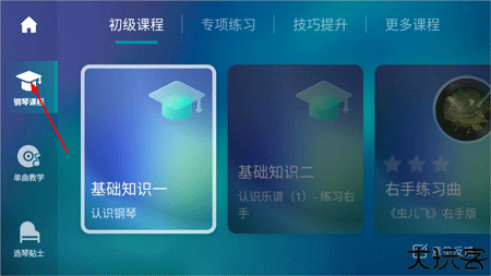 2、打开钢琴教学后,用户可选择钢琴课程或者单曲教学进行练习。