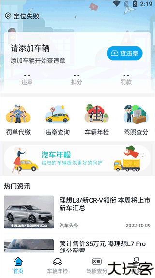 车辆违章查询安卓版,是专门为广大车主所设计和开发的车辆违规综合服务软件,其软件的功能十分全面,还为用户提供有各种违章查询、车辆年检、驾照查分等一系列相关内容,软件还会结合用户的出行记录,还可以统计分析出违章高发地的预警,为车主出行、异地旅游、自驾游提供众多便利,是车主必备违章查询工具。车辆违章查询安卓版下载完成后,在首页用户便能缴纳罚款、查询违规、车辆年检和驾照查分,并且还能浏览最新的汽车资讯。