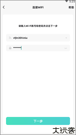 3、输入摄像机要连接的wifi网络名称与密码,进行下一步。