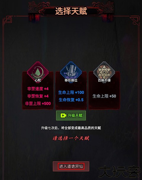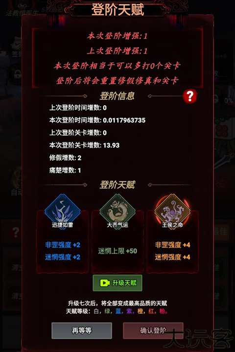 2、对开局天赋不满意,可以通过登阶进行重开。