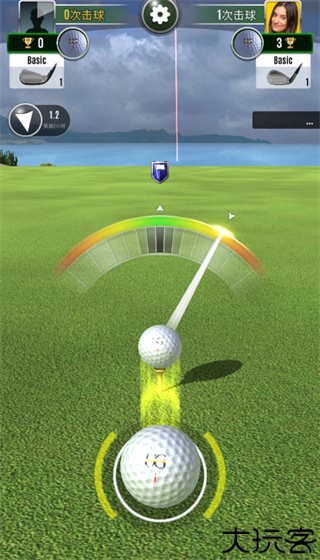 当球进入沙坑,瞄准盘的指针会急速摆动,玩家想要瞄准中心点实现完美击球难度大增。