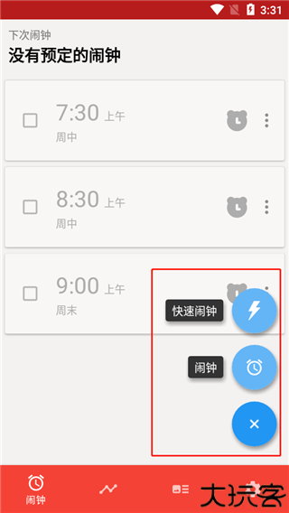 2、在软件内我们可以看到简洁清爽的界面,还有设置的预定闹钟。