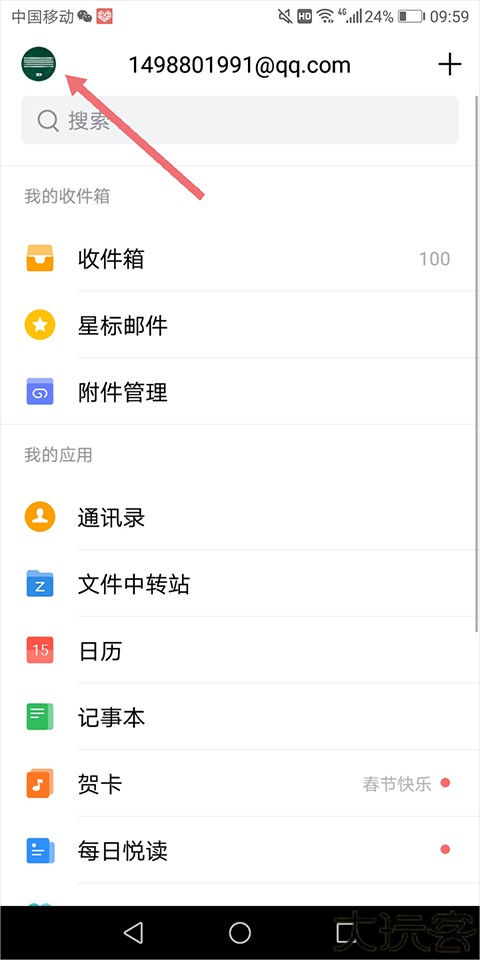 2、点击页面左上头像图标,进入账户管理界面添加更多邮箱账号。