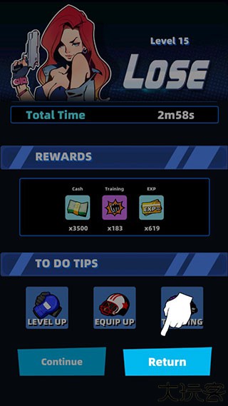 6、当玩家战斗失败后,玩家可以选择返回到主界面重新挑战。