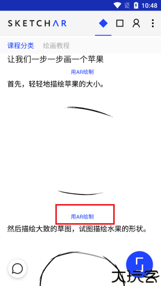 课程内设有详细的操作分解,每一小节都可选择是否使用AR辅助绘制。