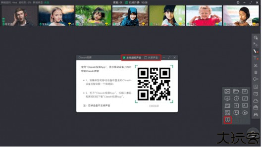 教师在电脑端Classin教室发起点击“教学工具”中的“ClassIn投屏”工具,弹出投屏的二维码。