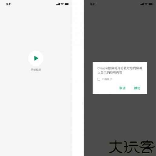 扫码成功后,点击“开始”按钮,即可将您屏幕上包括通知在内的所有内容,投屏到ClassIn教室。