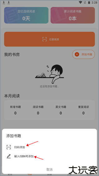 2、会有两种添加书籍的方式,一种是扫码,一种是输入书上的ISBN号添加。