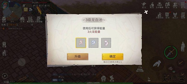 2、这z在三个建筑里面优先升级的,也是稳定的龙之力来源,玩家每天都能使用一次,每次升级也能多加一点龙之力。