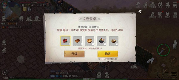 5、第三个则升级餐桌台。虽然前期没啥用,15秒回一点饱食度水分,但到后面会有好处。
