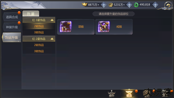 2转起可合成红阶饰品,需用相应阶段橙或红2星饰品合成进阶版本。