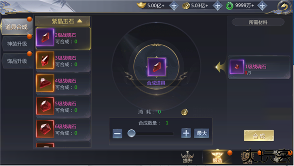 可在系统内进行宝石与杂项的融合,操作需消耗一定金币作为代价。