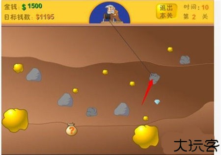 2、玩家要怎么样选择地底下的东西是一个关键,关系到玩家能不能过关。玩家在前面的关卡中因为时间比较充足可以选择大一点的金块。