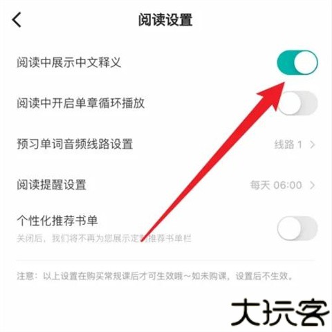 2、页面上方能看到阅读中展示中文释义功能开关。