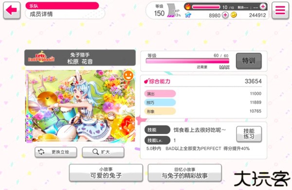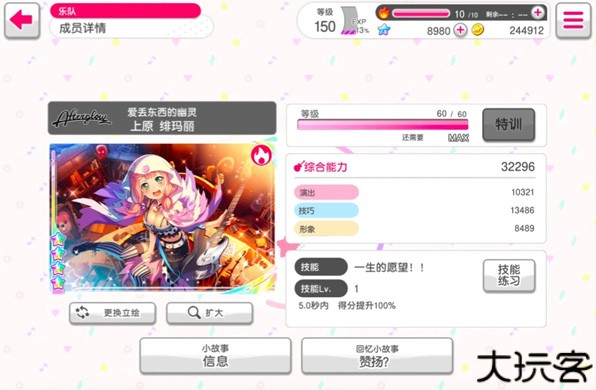 演出或练习券升级角色,故事解锁也能为成员带来属性成长。