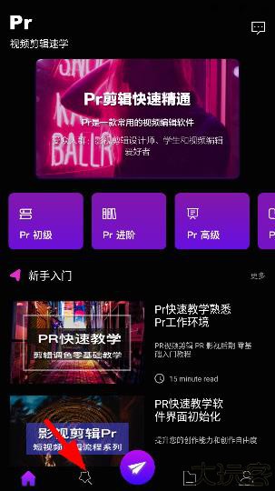 4、如果用户是纯新手的话,建议用户先进入首页的学习区,学习基础剪辑知识。
