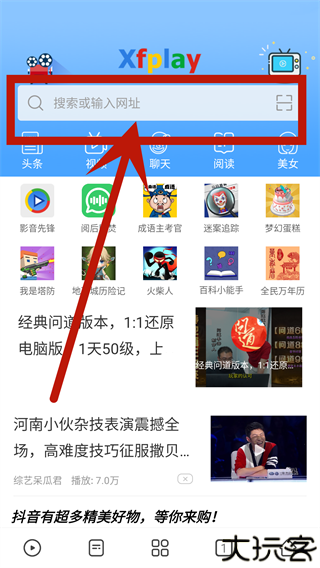 无下载提示时点击地址栏,进入浏览器搜索页面。