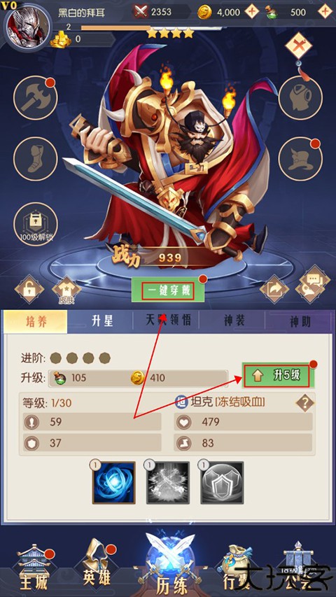 利用资源为英雄穿装、升星,增强战斗力。