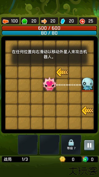 3、根据地图里的箭头指向选择路径,轻点箭头改变外星人前进方向类来去一举消灭敌人。