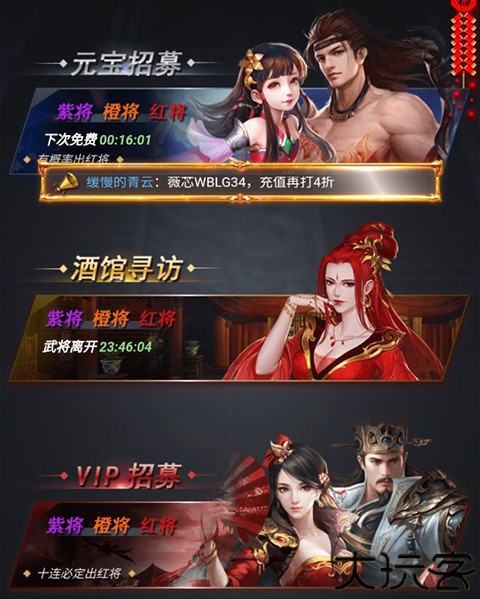5、进阶首发武将:鲁肃,蔡文姬,诸葛亮,赵云,张角。