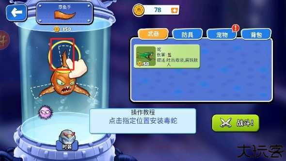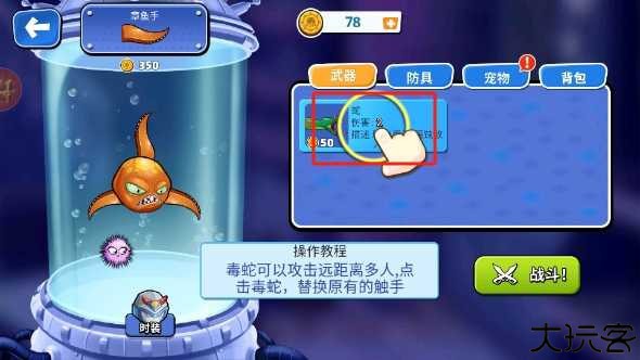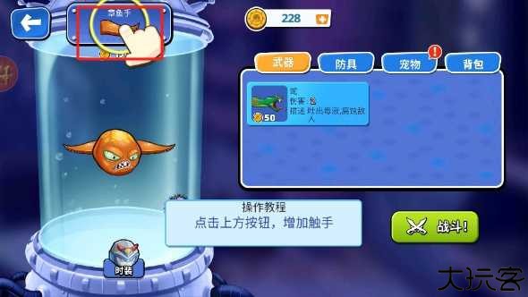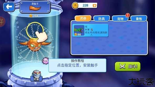 3、装备各种奇葩武器如激光炮、电击器,提升八爪鱼战斗力。