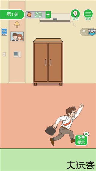 14、把垃圾桶里的坏苹果给老阿姨,用晾衣杆取下衣服,拿走柜子里的假发,穿上套装。
