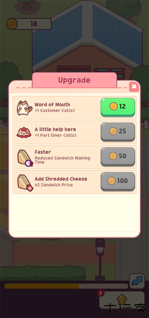 使用金币可升级生产速度,并加入奶酪提升售价。