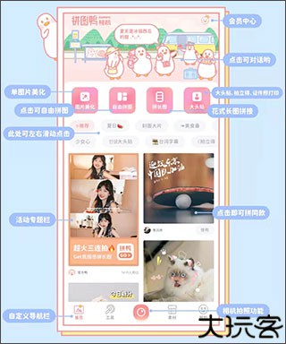 拼图鸭相机提供海量少女风模板涵盖甜美、复古、小清新、冷感等多种风格,200+滤镜随心切换,还能一键拼接聊天记录、电影截图,打造独特视觉氛围。拼图鸭相机app下载后,软件操作超简单,点开海报拼图立刻开玩,贴纸、花字全都免费用。最有趣的是,那些呆萌小鸭子不仅陪你拼图,还会时不时冒出来和你互动,让排版变得好看又有趣。轻松分享到社交平台,记录生活也能很治愈。