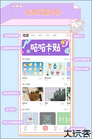 包含鸭鸭、少女、发饰、油画等类别贴纸,贴出个性与趣味。