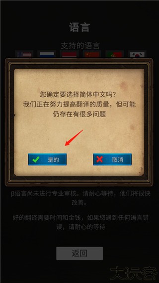 3、玩家选中后,点击以确定简体中文。