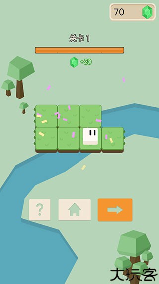 1、简单易上手:轻松滑动屏幕,操控豆腐方块在格子间跳跃,避开障碍物,完成目标。