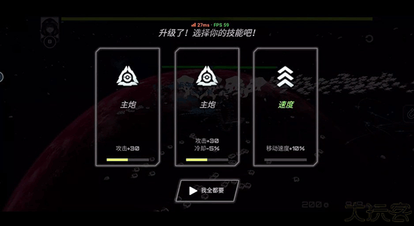 2、玩家通过完成任务可获取成长点数,用于强化飞船性能及火力输出,增强整体战斗力。