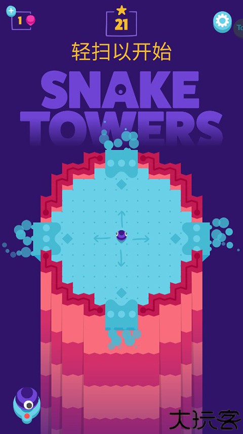 蛇塔游戏的玩法非常的简单,类似于贪吃蛇来去进行。需要滑动屏幕控制小蛇移动收集能量果实,收集越多小蛇身体就越长。而且是加入多种特殊的道具技能如粉碎球等等的,这样就可以获得直接撞碎障碍物。轻轻松松且畅通无阻,还有磁铁球可以去获得直接的吸取附近能量球。蛇塔游戏下载安装后游戏难度也会不断增加,后期比较考验玩家的反应速度。