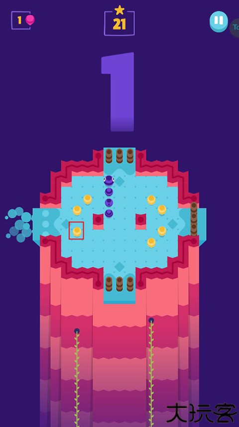 玩家可以去控制蛇不断向上攀爬,吞食闪闪发光的物体和升级道具。