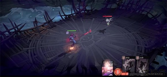 战斗期间角色会自动攻击,右下角显示能量与技能卡牌。