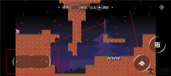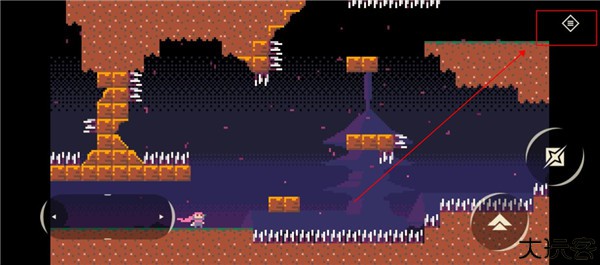 3、屏幕左下角的按键是方向键,可以控制忍者的上下左右移动,而右边的按键可以让忍者跳跃。