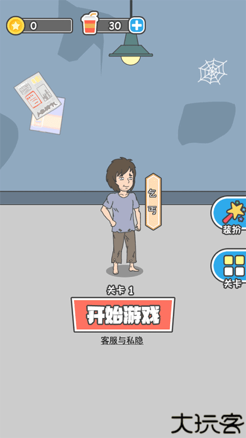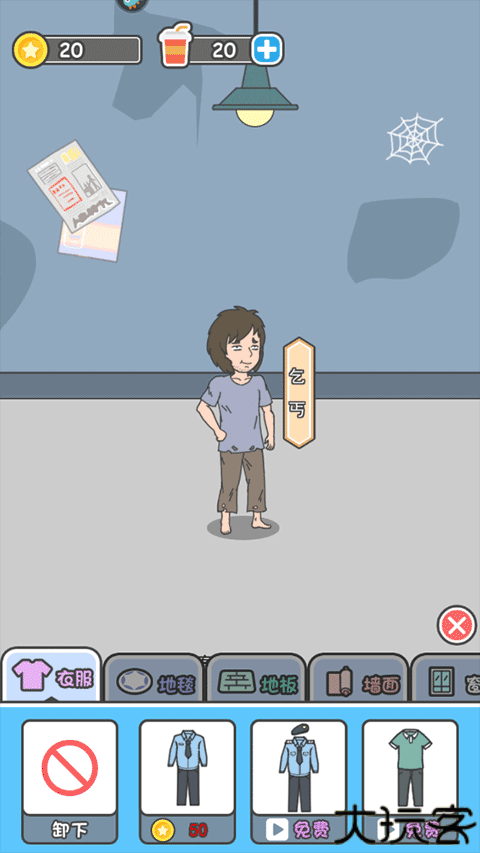 1、游戏使用的是闯关模式,游戏讲述的是创业失败的你流浪街头,想办法赚点钱。