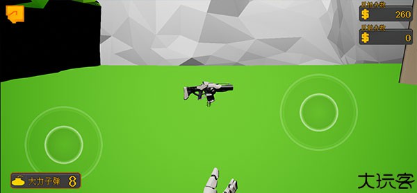 左侧按钮操控移动,右侧负责镜头转动,子弹在此阶段无限制使用。
